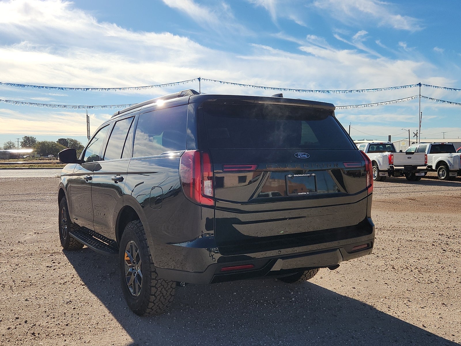 Agate Black Metallic 2025 Ford Expedition Tremor 4WD 10-Speed Automatic 3.5L V6 4WD.Equipment Group 501A High Package (2nd Row Power-Folding Captain's Chairs) 4WD 10 Speakers 3.73 Axle Ratio 3rd row seats: split-bench 4-Wheel Disc Brakes ABS brakes Adjustable pedals Air Conditioning Alloy wheels AM/FM radio: SiriusXM with 360L Apple CarPlay/Android Auto Auto High-beam Headlights Auto-dimming door mirrors Auto-dimming Rear-View mirror Automatic temperature control Brake assist Bumpers: body-color Compass Delay-off headlights Driver door bin Driver vanity mirror Dual front impact airbags Dual front side impact airbags Electronic Stability Control Emergency communication system: 911 Assist Exterior Parking Camera Rear Four wheel independent suspension Front anti-roll bar Front Bucket Seats Front Center Armrest Front dual zone A/C Front fog lights Front License Plate Bracket Front reading lights Fully automatic headlights Garage door transmitter Heated & Ventilated Leather Front Captain's Chairs Heated door mirrors Heated front seats Heated steering wheel Illuminated entry Leather steering wheel Low tire pressure warning Memory seat Navigation System Occupant sensing airbag Outside temperature display Overhead airbag Overhead console Panic alarm Passenger door bin Passenger vanity mirror Pedal memory Power door mirrors Power driver seat Power moonroof: Vista Roof Power passenger seat Power steering Power windows Radio data system Radio: B&O Sound System by Bang & Olufsen Rear air conditioning Rear anti-roll bar Rear reading lights Rear window defroster Rear window wiper Reclining 3rd row seat Remote keyless entry Security system SiriusXM w/360L Speed control Speed-sensing steering Speed-Sensitive Wipers Split folding rear seat Spoiler Steering wheel memory Steering wheel mounted audio controls Tachometer Telescoping steering wheel Tilt steering wheel Traction control Trip computer Turn signal indicator mirrors Variably intermittent wipers Ventilated front seats Voltmeter and Wheels: 18"Dark Carbonized Gray Painted Aluminum.After enriching Haskell TX for over 60 years the Toliver team is thrilled to join and serve the Stanton community. We carry forward the esteemed legacy initiated by Mr. Danny Ireton at B.F. White Motor Company. As Bailey Toliver Ford we're not just another dealership; we're a part of your community. Our roots date back to 1929 and we bring decades of commitment to excellence in sales and service to our neighbors. We're here to offer you the very best just as we've always done.